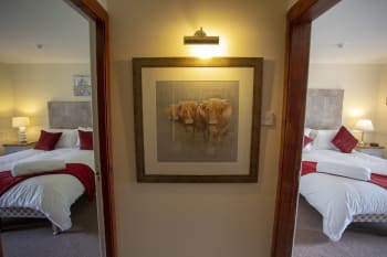 A spacious and comfortable twin room with views over the adjacent croft land.... more >